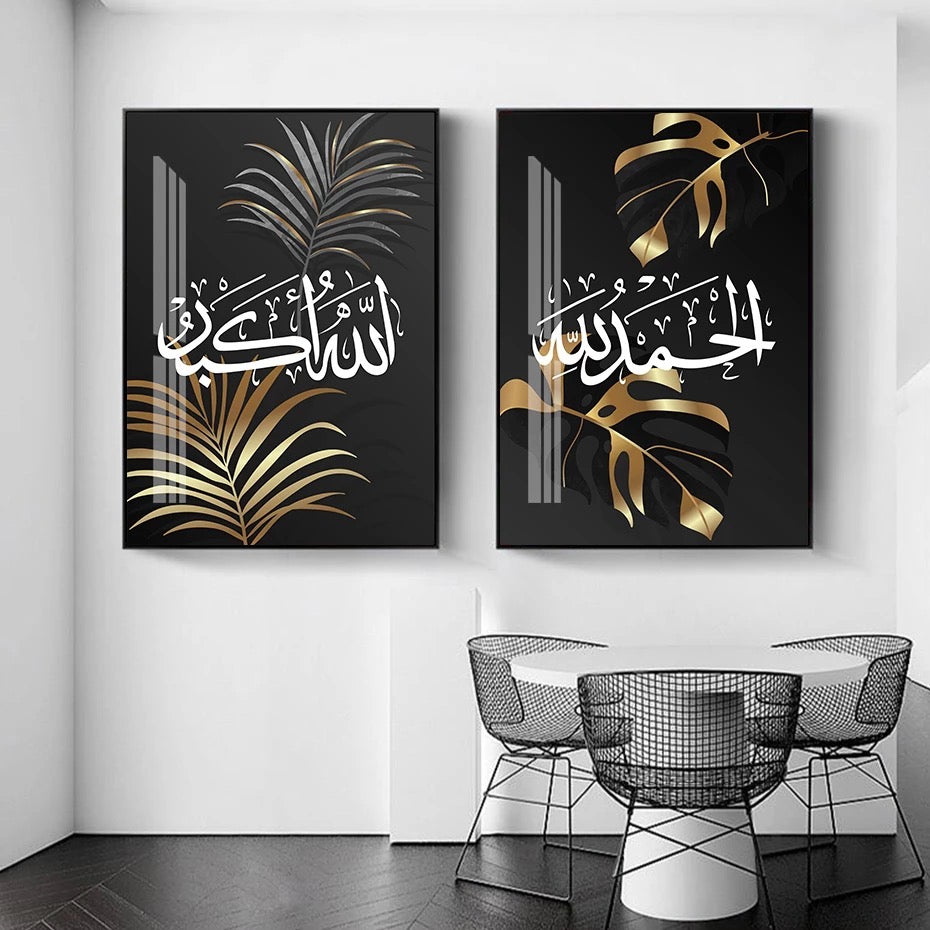White Islamic Calligraphy On Black Background With Matt Gold Leaf Hang It Home
