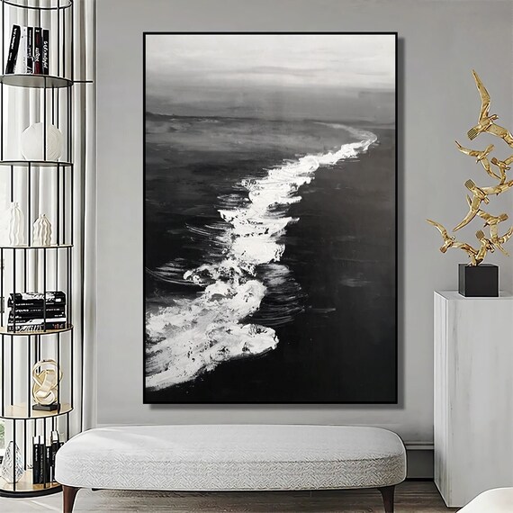 Black And White Beach Painting Modern Minimal 3d Ocean Art Hand Painted Thick Textured Painting On Canvas Original Oil Painting For Home Etsy Uk